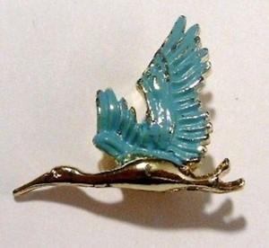 broche rétro bijou vintage oiseau en vol peinture émail couleur bleu 3465 | eBay