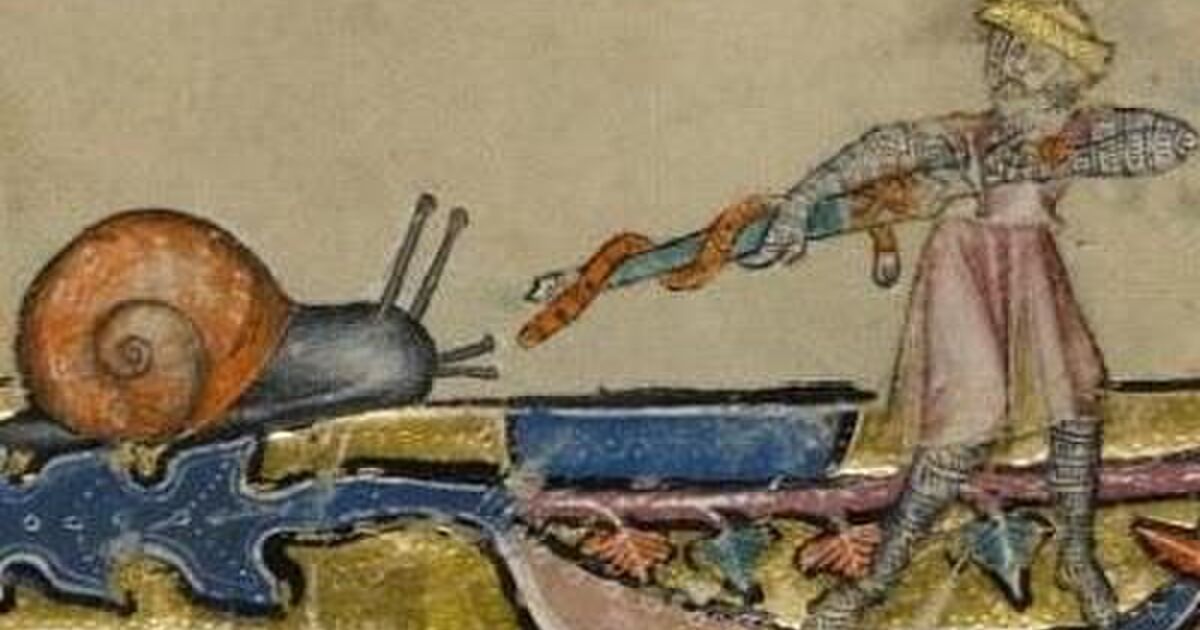 ヨーロッパ中世の写本における「騎士対蝸牛」図像の謎 - Togetter