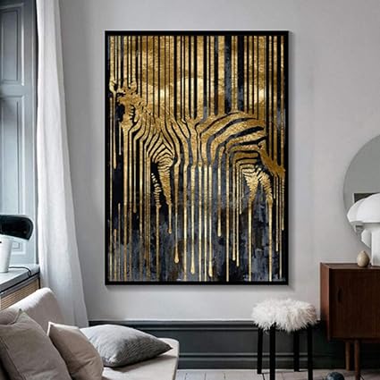N / A Poster Astratti e Stampe zebrate in Oro e Tela Nera Pittura murale per la Decorazione del Soggiorno: Amazon.it: Casa e cucina